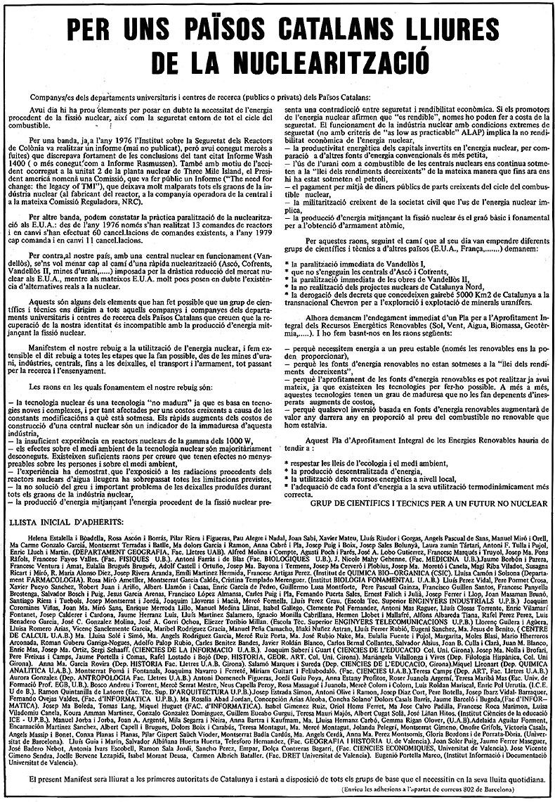 1981 Manifest "Per uns Països Catalans lliures de la nuclearització"