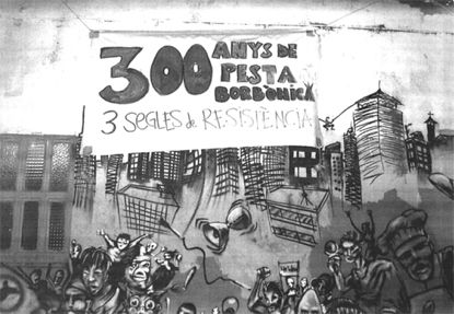 Entenem la monarquia espanyola com un instrument del capitalisme internacional i del nacionalisme espanyol per subjugar les llibertats dels diferents pobles ibèrics i per posar fre a l’impuls d’altres formes d’organització política i econòmica a l’Estat espanyol. En aquest context i sota aquests preceptes, com vam fer públics i notoris, vam decidir el dia 12 d’octubre col•locar una pancarta a la façana de l’Ateneu de Barberà amb la llegenda “300 anys de pesta borbònica, 3 segles de resistència” entre d’altres actes informatius, de sensibilització i de denúncia que donaven contingut a aquesta frase al•legòrica.
