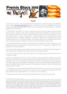 Participaran en els Premis Blocs de les Comarques Centrals del PV 2008 els blocs que siguen proposats per part dels seus autors o d’algun del seus lectors i que hagen estat actius durant l'any 2008. La proposta de blocs es farà a través de comentaris a esta entrada, indicant-se: