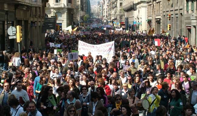 Les manifestacions que han tingut lloc a Barcelona, Girona, Lleida, Tarragona i Tortosa, han estat de les més majoritàries, aplegant a 100.000 persones, segons els sindicats, entre professorat, estudiants, pares i mares. A més a més, no hi ha hagut activitat lectiva a Catalunya, més del 80% de professorat de primària ha participat activament a la vaga. Els IES han quedat buits per la vaga dels estudiants i la participació majoritària en més d’un 60% del professorat.