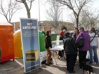 Girona Decideix va organitzar divendres diverses taules informatives i de vot anticipat a la sortida de l'IES Vicens Vives de Girona.