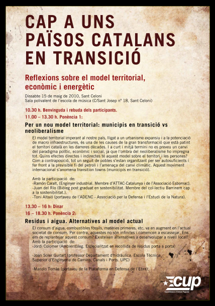 La Candidatura d'Unitat Popular (CUP) presenta una jornada sobre llengua, cultura, associacionisme i memòria històrica per preparar el programa marc de les eleccions municipals de 2011.
