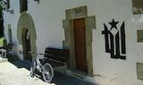L'Ajuntament de Sobremunt, avui al migdia, amb un emblema de Terra Lliure molt visible a la seva façana. Foto: Osona.com