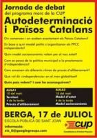 "Autodeterminació i Països Catalans" [esdeveniment al Facebook] és el títol de la nova jornada de treball que ha organitzat la Candidatura d'Unitat Popular (CUP) en el marc del procés d'elaboració del programa marc que ha de permetre a l'organització poder presentar-se a les eleccions municipals de l'any que ve.