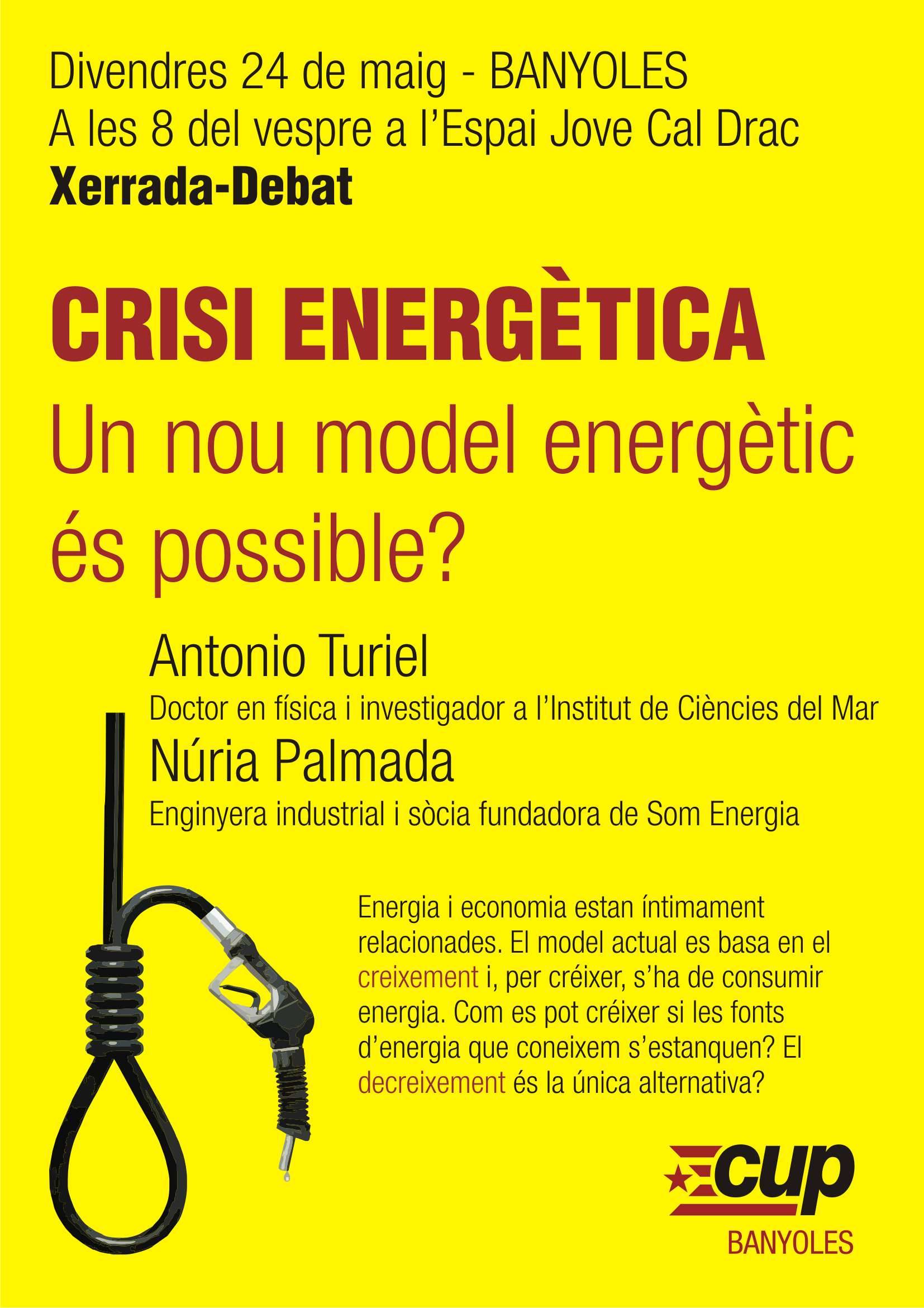 La CUP de Banyoles també recorda que ha organitzat pel divendres 24 de maig una xerrada-debat sobre el model energètic, que comptarà amb la presència del físic Antonio Turiel, que és titular del CSIC de l'Institut de Ciències del Mar i membre de l'Oil Trash Observatory, així com de Núria Palmada, enginyera industrial i sòcia fundadora de Som Energia. L'acte, que té per títol "Crisi Energètica: un nou model energètic és possible?", es celebrarà a les 8 del vespre a l'Espai Jove Cal Drac.