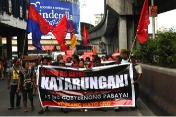 El moviment revolucionari té posat el punt de mira en la manifestació convocada el proper 30 de novembre pel KMU, acrònim de Moviment Primer de Maig que agrupa dues organitzacions de masses i nou federacions sindicals i és l’encarregat d’organitzar els obrers de les zones urbanes, i que es preveu massiva. Manifestació a la qual s’hi ha avocat tot el moviment sota el paraigües de BAYAN i que tindrà com a eix central denunciar la corrupció sistèmica de la casta política, demanar responsabilitats criminals pels efectes del cicló i commemorar el 150è aniversari del naixement d’Andres Bonifacio, treballador revolucionari que va liderar la lluita anticolonial contra Espanya. Per aquest motiu aquest dies KMU ja està organitzant petites manifestacions amb un clar objectiu propagandístic.