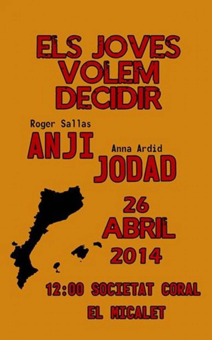 Per això mateix, l'ANJI donarà suport a la Plataforma de Joves pel Dret a Decidir del País Valencià aquest 26 d'abril. Un acte que serveix de punt de trobada entre joves dels països catalans amb ganes de canviar el panorama polític.
