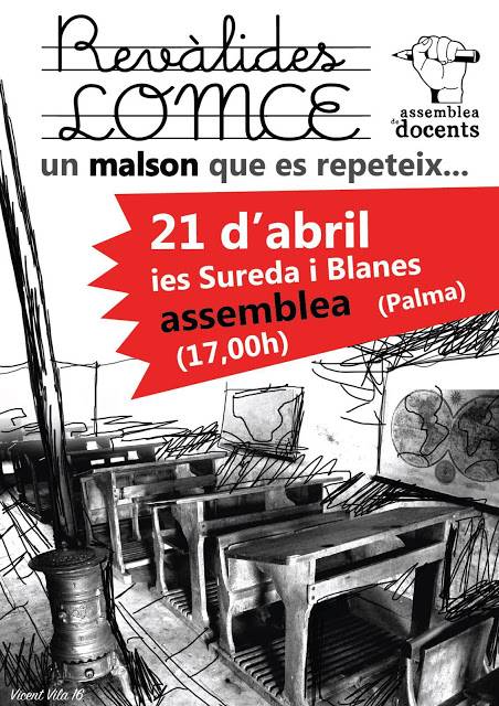 A l'Assemblea de docents d'ahir a l'IES Sureda i Blanes, els docents van decidir exigir al Govern que es deixi de pràctiques dilatòries i missatges confusos, i aturi d'una vegada les proves LOMCE tal i com ja han fet d'altres comunitats.