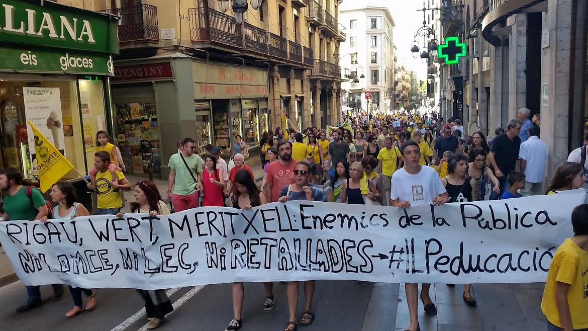 Més d'un miler de manifestants es van concentrar a la plaça Urquinaona en protesta "contra les retallades de la Consellera Meritxell Ruiz". L'èxit de la convocatòria va acabat tallant el carrer i caminar en manifestació per Via Laietana fins a Plaça Sant Jaume per llegir el manifest davant el Palau de la Generalitat.