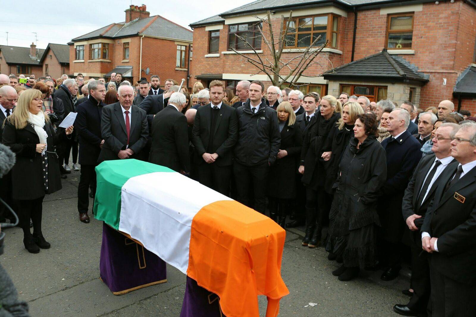 Al funeral han acudit el primer ministre de la República d'Irlanda, Enda Kenny, i el president Michael D. Higgins, així com l'expresident d'EUA Bill Clinton. Sota el seu mandat es van signar en 1998 els Acords de Divendres Sant. «Si voleu continuar el seu llegat, acabeu el treball que va començar», ha instat Clinton als assistents.