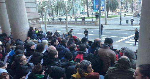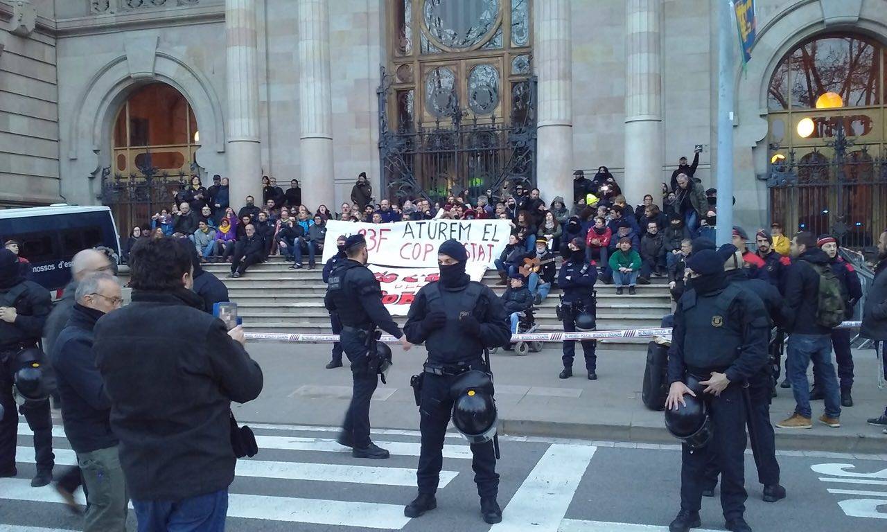 S'havien encadenat al Palau de Justícia de Barcelona de manera pacífica i han desplegat una pancarta amb el lema ’23-F, aturem el cop d’Estat’. Al migdia s'ha fet una convocatòria davant de la comissaria dels Mossos a Les Corts per exigir la seva llibertat.