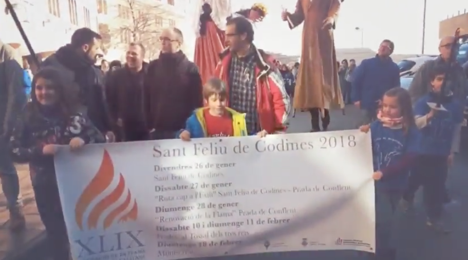 Enguany han estat els membres Centre Excursionista de Sant Feliu de Codines que l'han portada des de la tomba de Pompeu Fabra situada al cementiri de Prada del conflent on la van encendre el passat 28 de gener