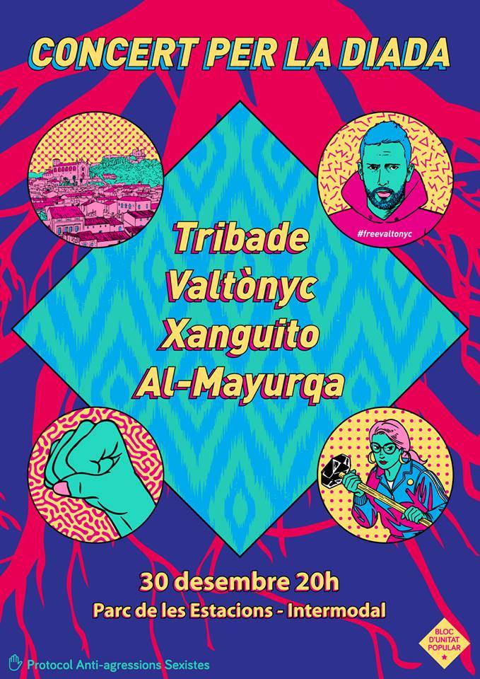 En acabar la manifestació Diada de Mallorca, al Parc de les Estacions - Intermodal a les 20h, just després de l'acte polític, hi haurà ballada popular amb Al Mayurqa MúsicaXANGUITO ens faran ballar a les totes i Valtonyc ens farà una visita molt especial. I per acabar, per primer pic a Mallorca, clourà el concert de la Diada de 2018 amb Tribade!!