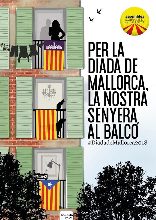 L'Assemblea Sobiranista de Mallorca (ASM) ha fet una crida any més la ciutadania a penjar la senyera quadribarrada als balcons amb motiu de la Diada de Mallorca, en homenatge a l'estendard del Rei en Jaume i com a mostra de la voluntat irreductible del nostre poble de defensar i reivindicar la nostra identitat, llengua i cultura.