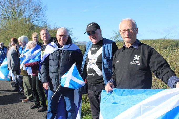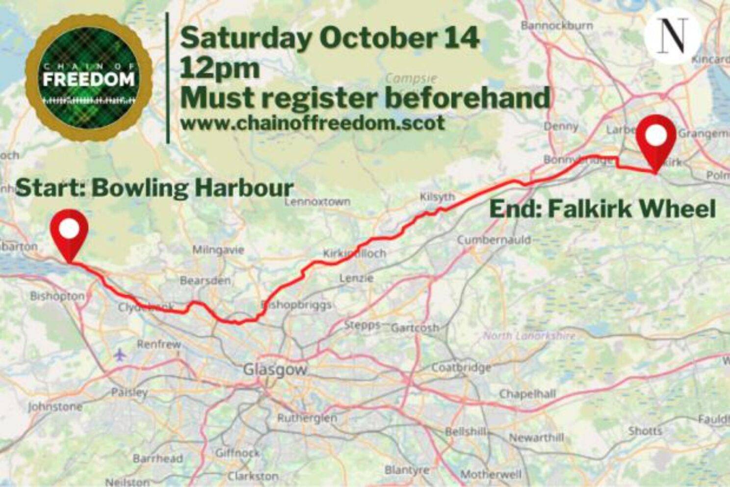 Ahir a la tarda, una cadena humana de més de 50.000 persones va connectar Glasgow amb Edimburg un total de 56km. La cadena s'ha format pel camí de sirga del canal de Forth i Clyde, obert l’any 1790 i que travessa el centre d’Escòcia, fet que proporcionava una ruta per als vaixells marítims. Això permet de no haver de tancar carreteres. Un extrem és Bowling Harbour, a tocar de Glasgow, la porta d’entrada occidental als canals de les terres baixes, i l’altre és el Falkirk Wheel, un elevador giratori per a vaixells a la ciutat de Falkirk. En un principi, s’havia previst que arribés fins a Lochrin Basin, l’extrem oriental del canal, però finalment no es farà el canal de la Unió, que connecta Falkirk amb Edimburg.