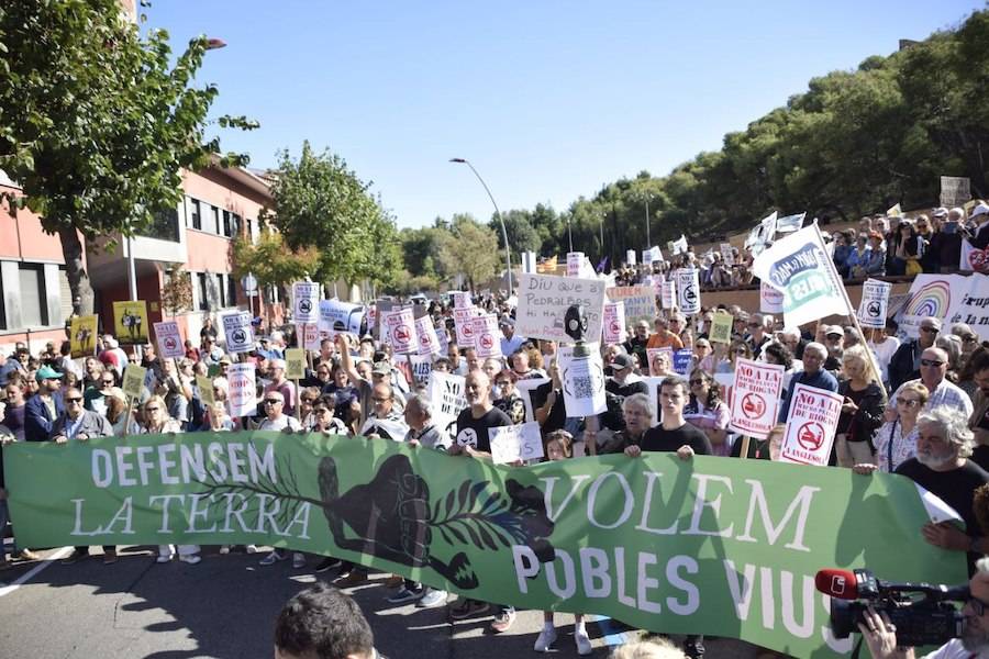 Gairebé dues mil persones s’han manifestat aquest diumenge pels carrers de Lleida per protestar contra els macroprojectes energètics i exigir la defensa del món rural, l’equilibri territorial i una transició energètica justa.