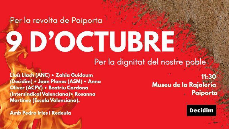 Aquest 9 d'octubre 787 anys després, i passant de l'etapa de sobirania plena a la de nació colonitzada i oprimida després de la perduda dels furs en 1707, aquell fet fundacional cobra una rellevància especial des de la localitat de Paiporta (epicentre de la zona destruïda per la DANA del passat 29 d'octubre).