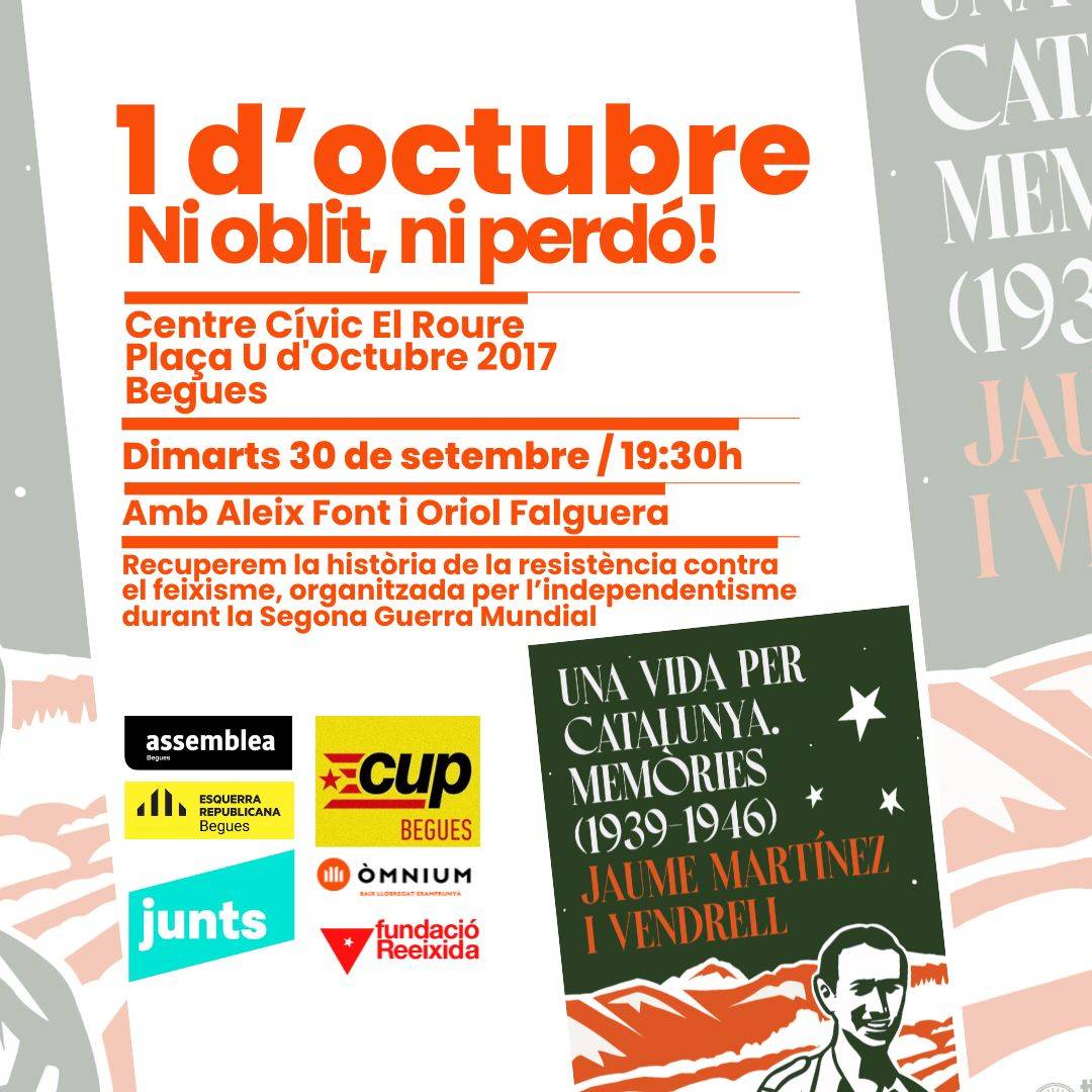 Presentació de la Fundació Reeixida a Begues amb el fill del primer militant independentista que entrà a la Catalunya ocupada per Franco des del seu exili Francès.