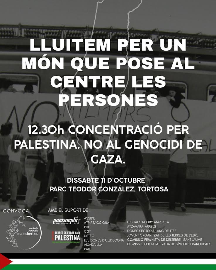En acabar, el col·lectiu ha convocat una concentració en suport al poble palestí, organitzat en col·laboració amb altres entitats i moviments socials de la ciutat i del territori.