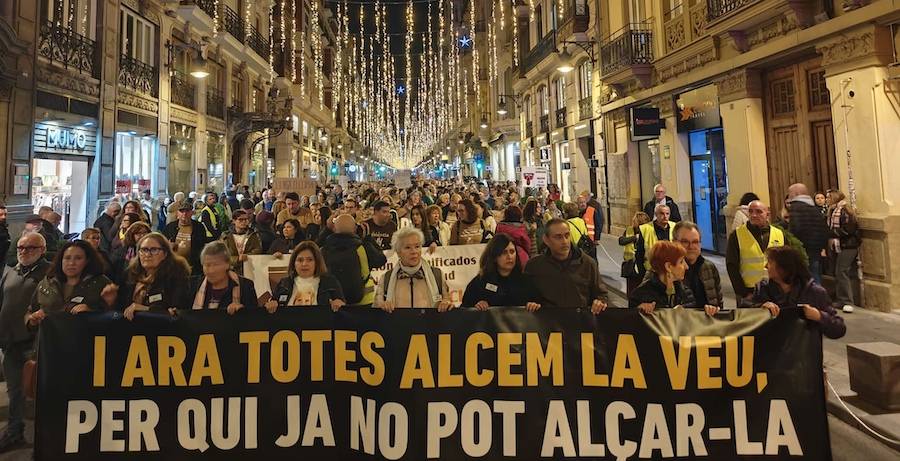 La marxa ha partit de les Barques i Poeta Querol i ha avançat fins a la Porta de la Mar entre crits de “Consell dimissió” i “No són morts, són assassinats”, amb la muixeranga obrint la protesta. Les portaveus de les associacions han denunciat que, malgrat la dimissió de Mazón, “continua aforat i mantenint l’acta”, fet que consideren una maniobra per esquivar la justícia.