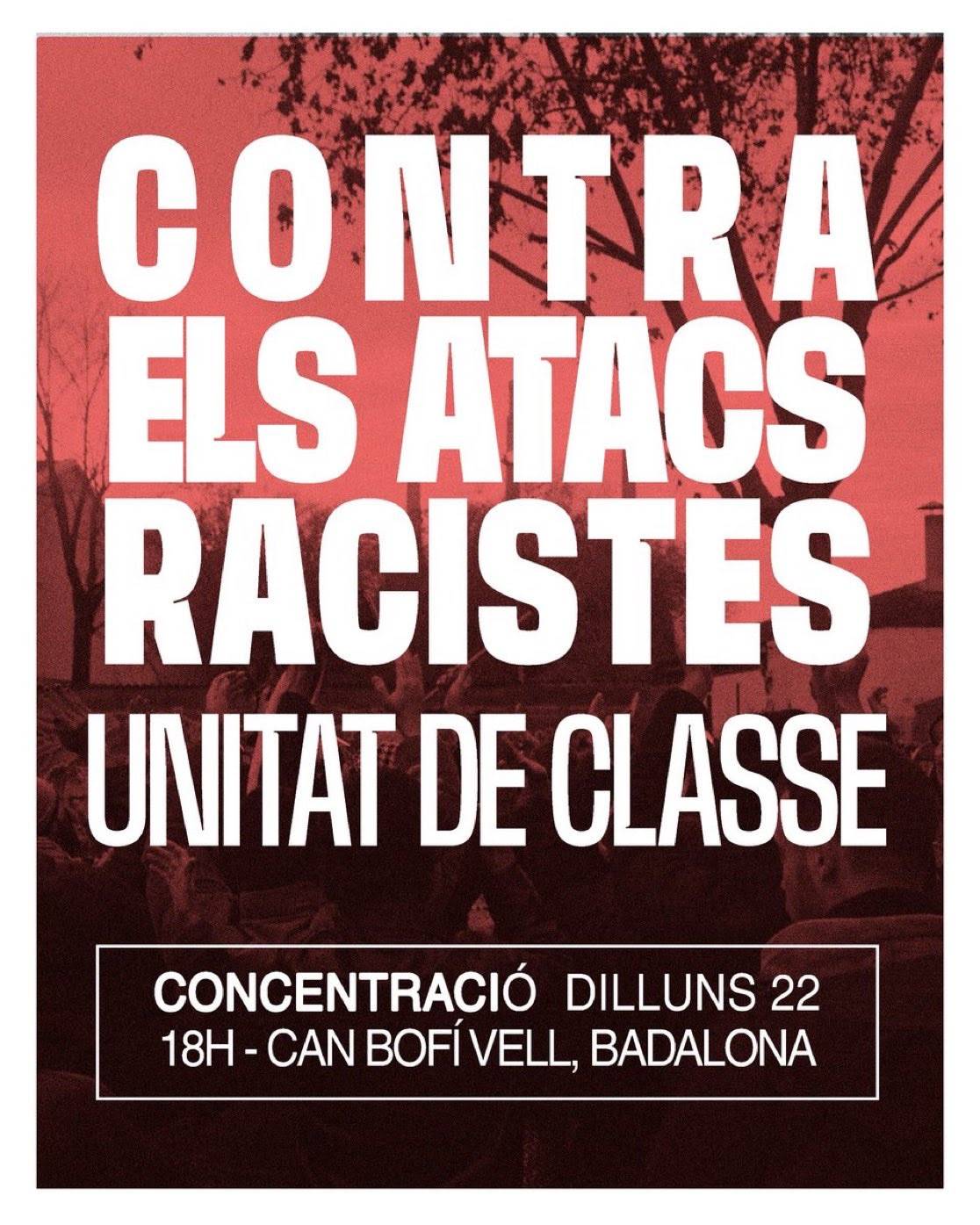 Concentració aquesta tarda a les 18h a Can Bofí Vell (Badalona), en resposta davant l’atac d’ahir al vespre contra els residents del B9 que havien de ser acollits a la Parròquia de Montserrat.