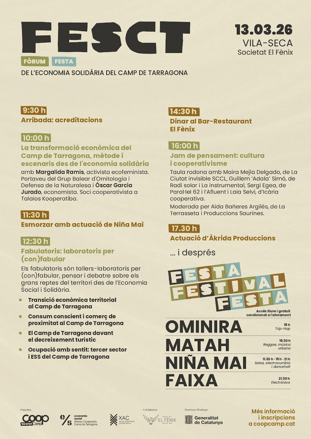 El programa CoopCamp celebrarà el seu 10è aniversari amb una nova edició del FESCT, que enguany es transforma en un fòrum de debat i reflexió orientat a abordar els grans reptes del Camp de Tarragona des de l’Economia Social i Solidària (ESS).