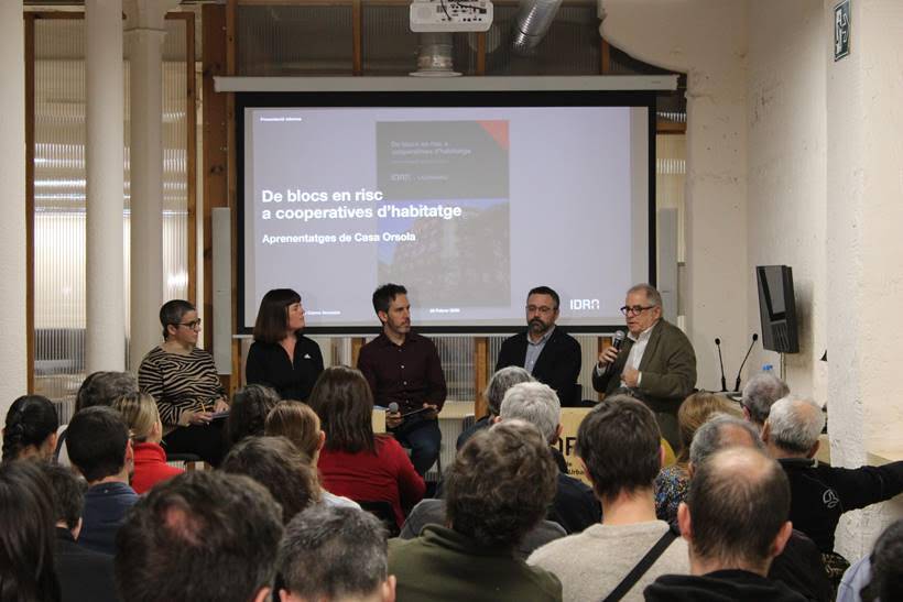 La seu de l’IDRA, al carrer Balmes 13, ha acollit la presentació de l’informe “De Blocs en Risc a Cooperatives d’Habitatge. Aprenentatges de Casa Orsola”, una recerca impulsada conjuntament amb La Dinamo. L’acte ha reunit representants institucionals, entitats del sector i professionals de l’habitatge per compartir els resultats de l’estudi i debatre sobre el potencial de la cooperativització com a eina de política pública.