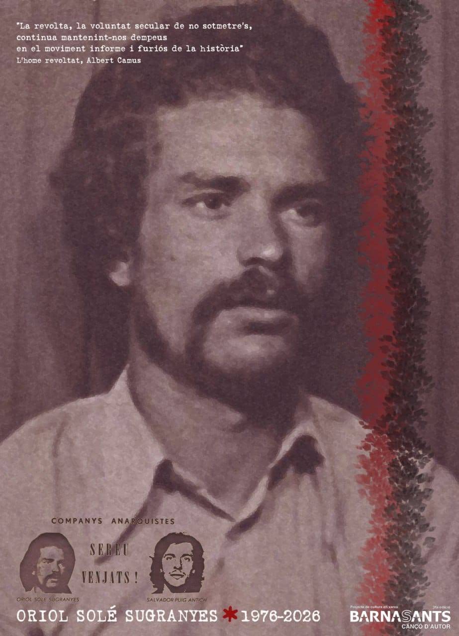 El CAT Tradicionàrius acollirà aquest diumenge 15 de març, a les 19 hores, la representació de La balada d’en Solé Sugranyes, una òpera polifònica que recupera la memòria del militant llibertari Oriol Solé Sugranyes, assassinat el 6 d'abril de 1976 a les muntanyes de Sorogáin (Euskadi Sud) quan intentava refugiarse a Iparralde després d’haver fugit de la presó de Segòvia.