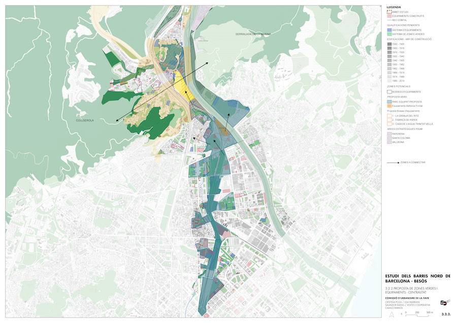 Entre les principals propostes destaca la continuïtat del parc lineal de la Sagrera fins a Can Zam, integrant equipaments i espais verds com a elements estructurants del territori, capaços de generar permeabilitat urbana i nous pols de centralitat.