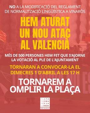 Plataforma per la Llengua - País Valencià ha anunciat una nova convocatòria de mobilització a Vinaròs per defensar l’ús del valencià a l’espai públic i institucional.