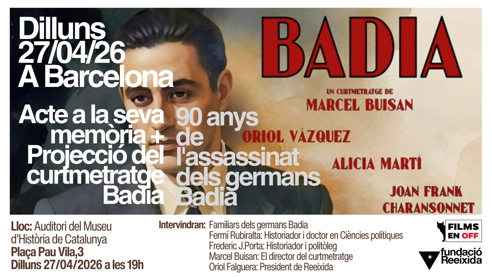 Us volem comunicar que seguint la nostra línia de recuperació de la memòria nacional, combinant la investigació, la divulgació i el reconeixement dels qui han treballat per la llibertat de Catalunya, aquests dies vinents propers al 28 d’abril del 1936, dia en el qual fa noranta anys els germans Miquel i Josep Badia queien assassinats a trets a la confluència dels carrers Muntaner i Diputació, els volem ressituar.