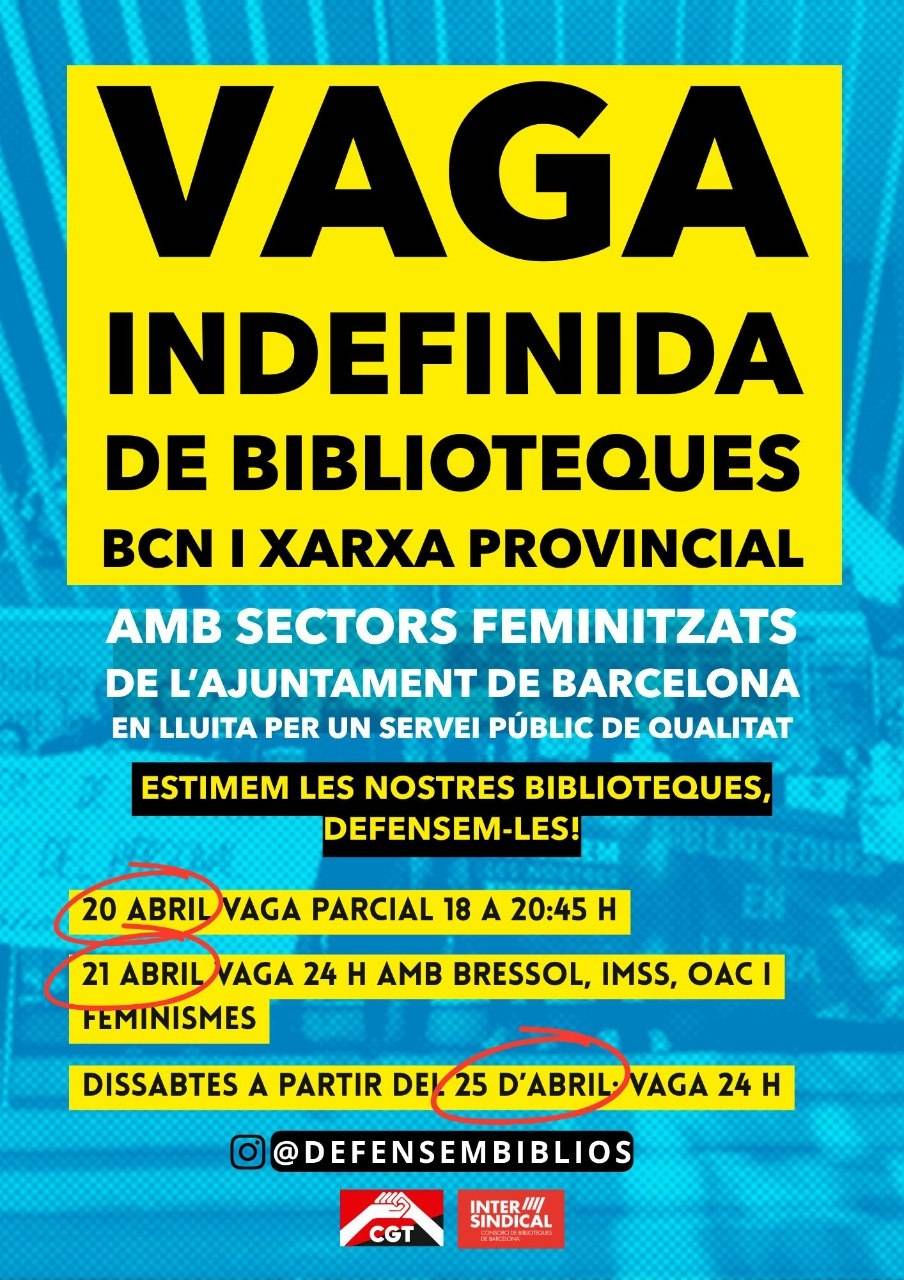 Les treballadores de Biblioteques de Barcelona i de la xarxa provincial han convocat una vaga indefinida per denunciar les seves condicions laborals i reclamar un servei públic de qualitat. La mobilització, impulsada per sindicats com la CGT i la Intersindical, s’emmarca també en la lluita dels sectors feminitzats de l’Ajuntament de Barcelona.